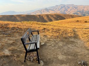 The bench itself is a place I can relax even more fully and, with eyes at half-mast and breathing slowed to half pace, both the conscious and subconscious mind can mingle with surprising results. The breeze blowing across the golden grasses might transport me to childhood family trips to the Midwest where I watched gusts of wind ripple through fields of grain. Almost in a trance I take in the shadows accentuating the gullies on Burch Mountain and I’m suddenly transported to a mountain bike ride I enjoyed at the same time of summer several years ago. Eventually my floating mind jumps to this very article and, without judgment or constraint, I let it structure the ideas you’re reading before my awareness bounces elsewhere.